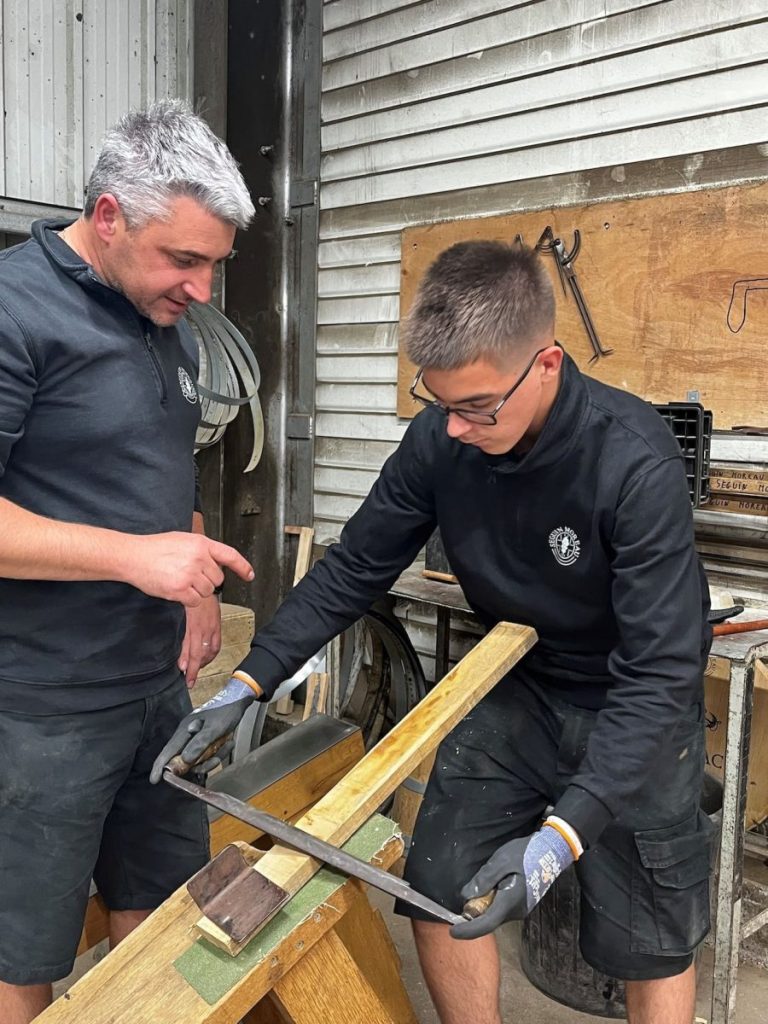 - Louis: Dans le cadre de notre formation on nous enseigne tous les gestes manuels qui font la beauté de ce métier, même si une fois en entreprise on travaillera avec des machines. On nous apprend la précision, l’exigence. C’est aussi un métier qui demande de la force.